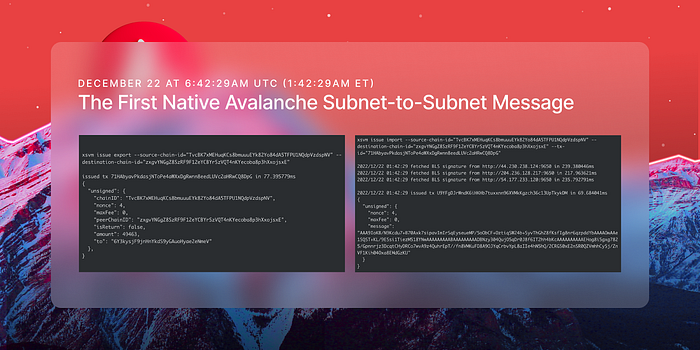 展開後、最初のネイティブ サブネット間メッセージが本日 12 月 22 日午前 6 時 42 分 29 秒 UTC (午前 1 時 42 分 29 秒 ET) に送信されました。