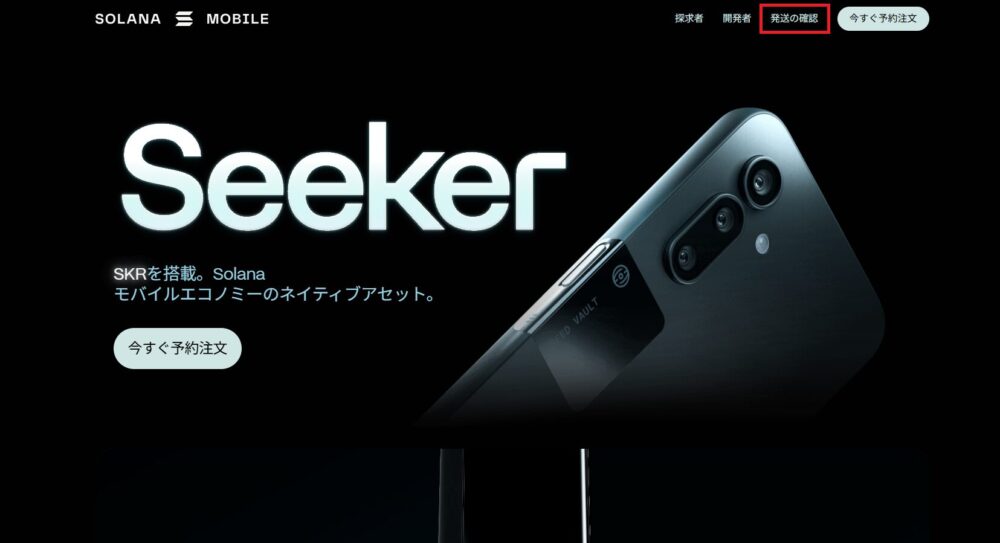 SolanaMobaileのサイトに行って支払いが完了しているか確認します