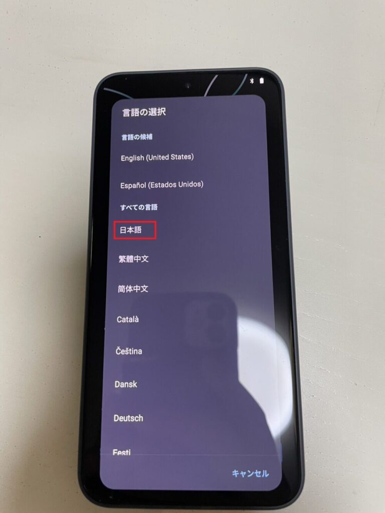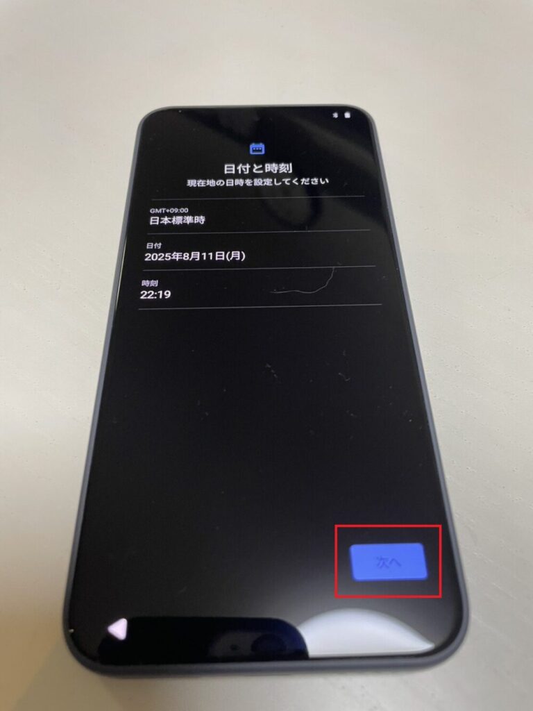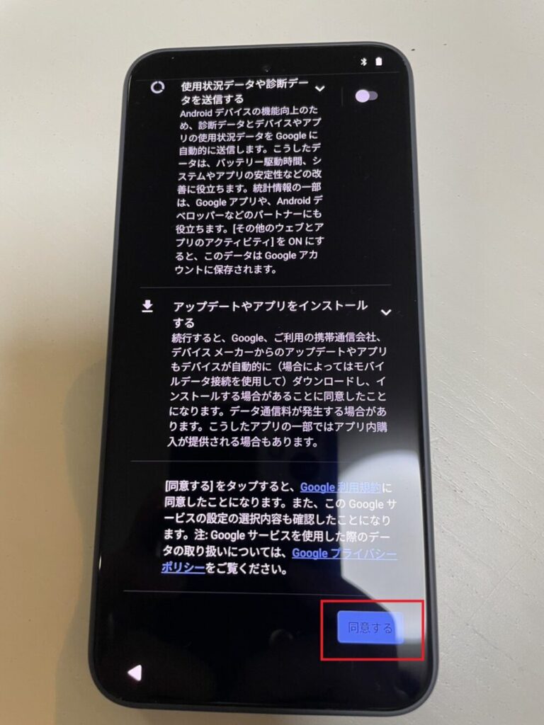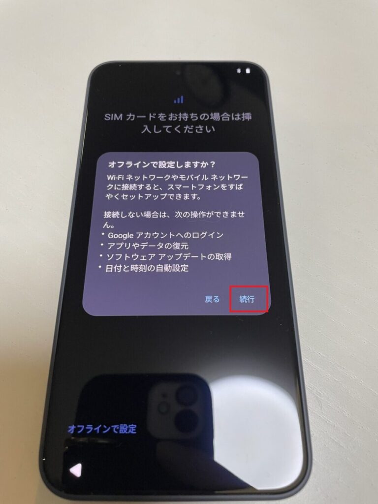 この後のGoogleログインやアップデートで通信が必要になるため、できるだけ安定した回線を使うのがおすすめです。