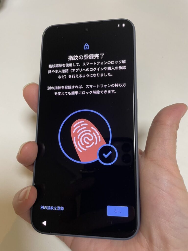 続いて、指紋認証の登録を行います。