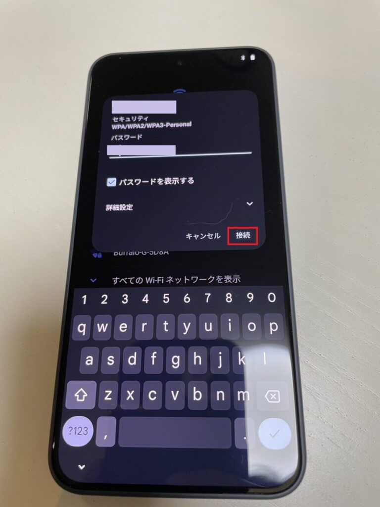 自宅やオフィスなどのネットワークを選択し、Wi-Fiに接続します。