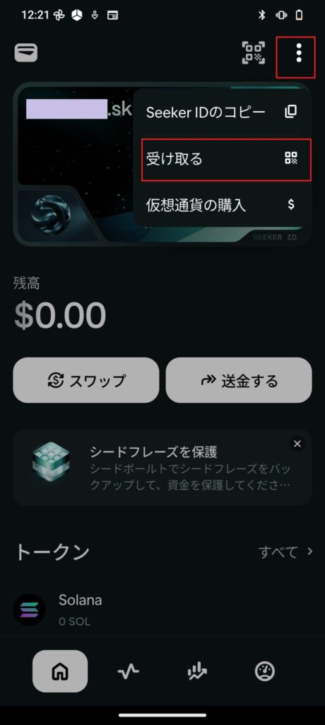 - 別のウォレットや取引所 → Seekerへ「送金」