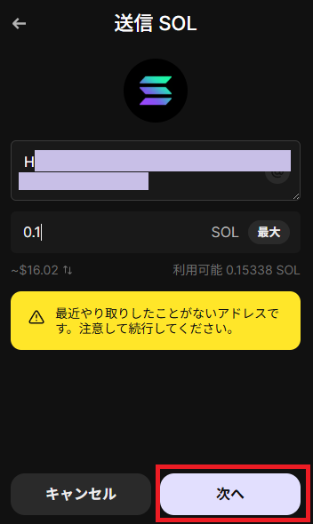 PhantomでSend(送る)